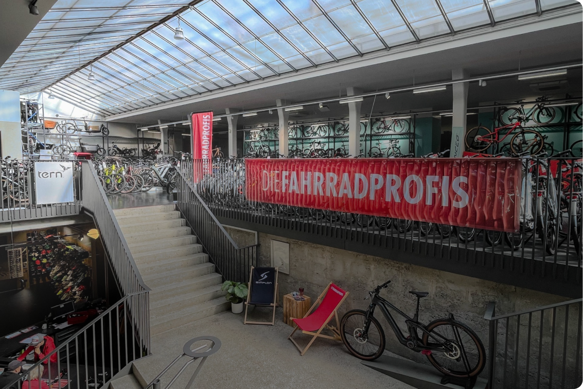 - Beeindruckende 1500 m² Showroom mit bis zu 900 Fahrrädern