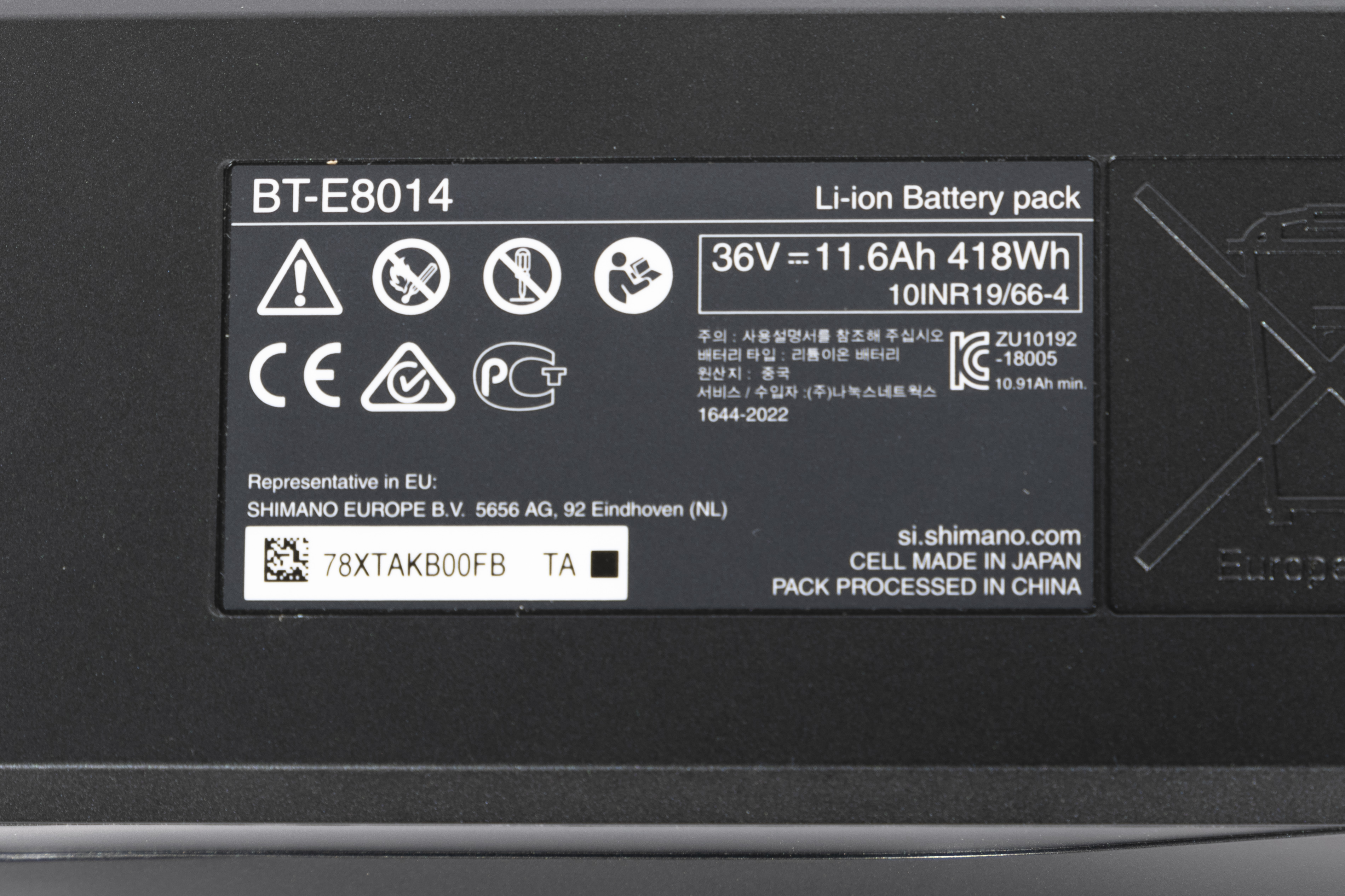 1 x Shimano Steps BT-E8014 Akku 11,6Ah 418Wh Rahmenakku