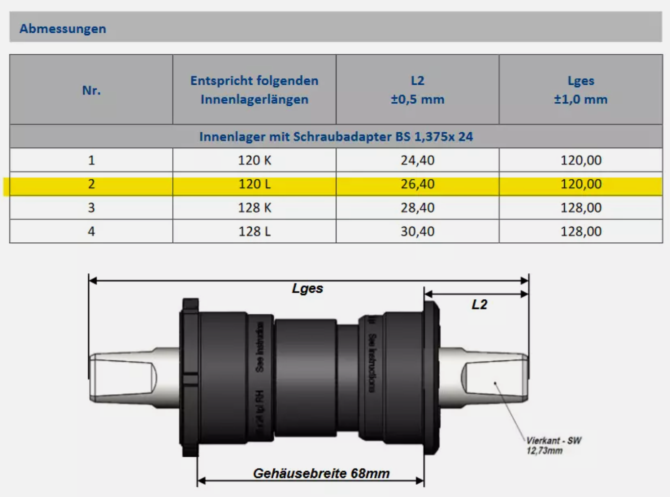 - Vierkant 68mm BSA-Lager