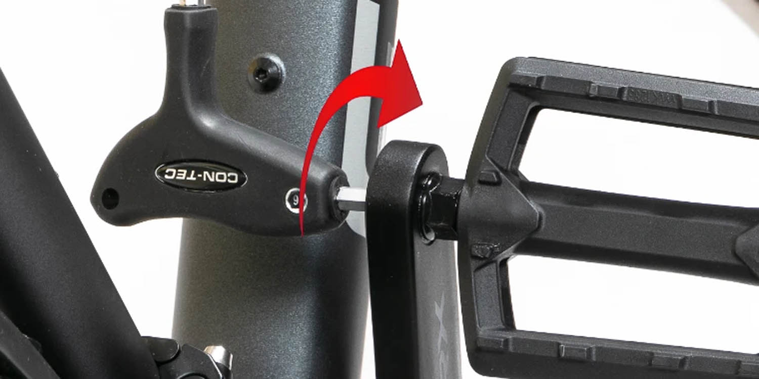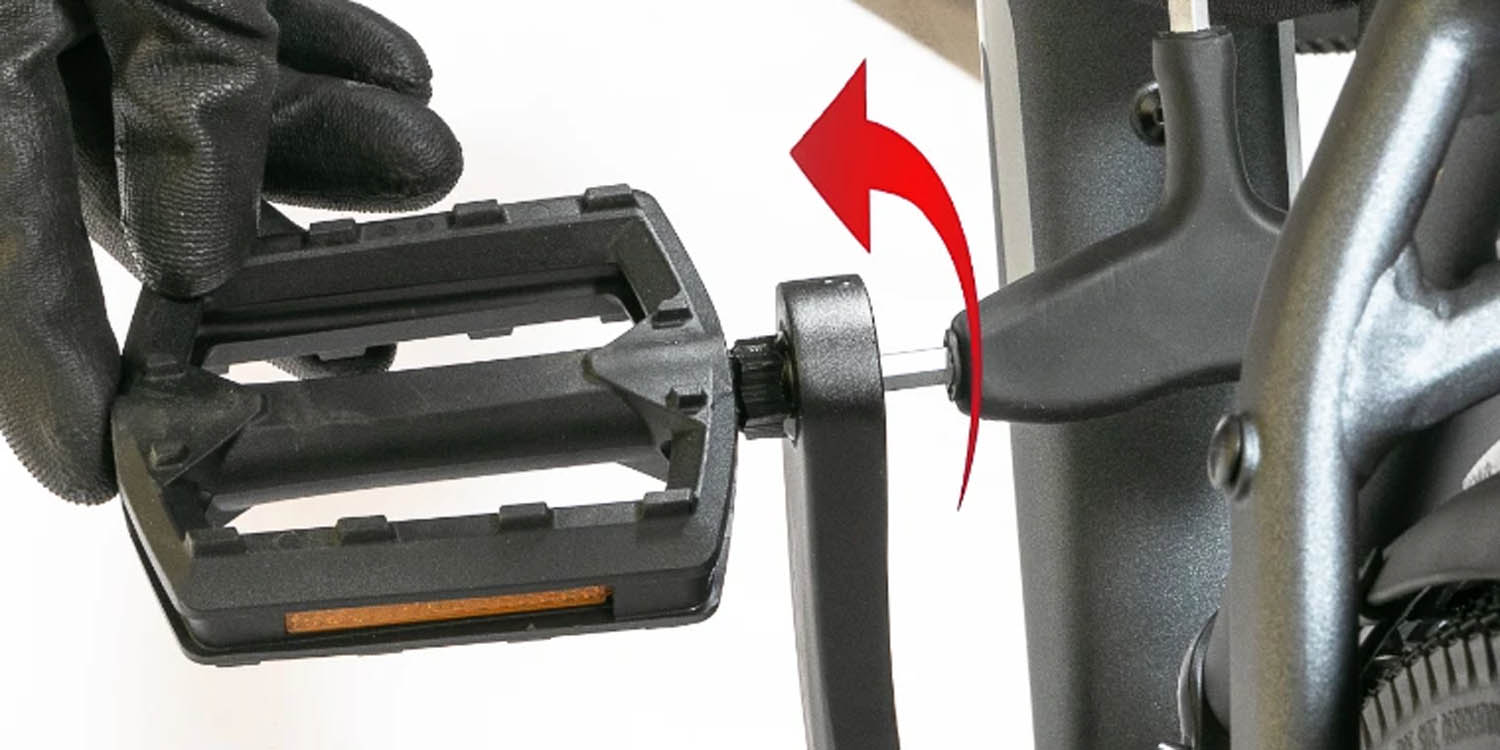 Beide Pedale werden in Richtung des Vorderrads eingeschraubt: