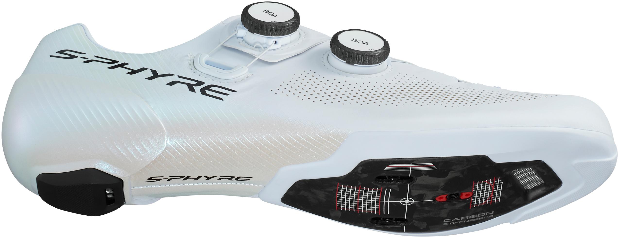 Der Shimano S-PHYRE RC903 ist ein High-End-Rennrad-Schuh für all jene, die maximale Performance, Passform und Effizienz fordern. Mit einem rundum Umschließen („360° surround wrapping“) Obermaterial und einem überarbeiteten Vorderfußbereich liefert der RC903 eine präzise und komfortable Passform über lange Strecken. Zwei BOA® Li2-Drehverschlüsse in einer „crossover“ Schnürung ermöglichen fein abgestimmte Anpassungen, und die Ferse wird durch eine Anti-Twist-Ferse stabilisiert. Die Kombination aus verstärktem Mikrofaser-Leder mit perforierten Belüftungszonen sorgt für geringes Gewicht und gute Atmungsaktivität, während die optimierte Mittelfuß- und Sohlenkonstruktion für exzellente Kraftübertragung sorgt. Der RC903 ist gemacht, um beim Sprint, am Berg oder bei schnellen Gruppenfahrten unter allen Bedingungen zu überzeugenFeatures