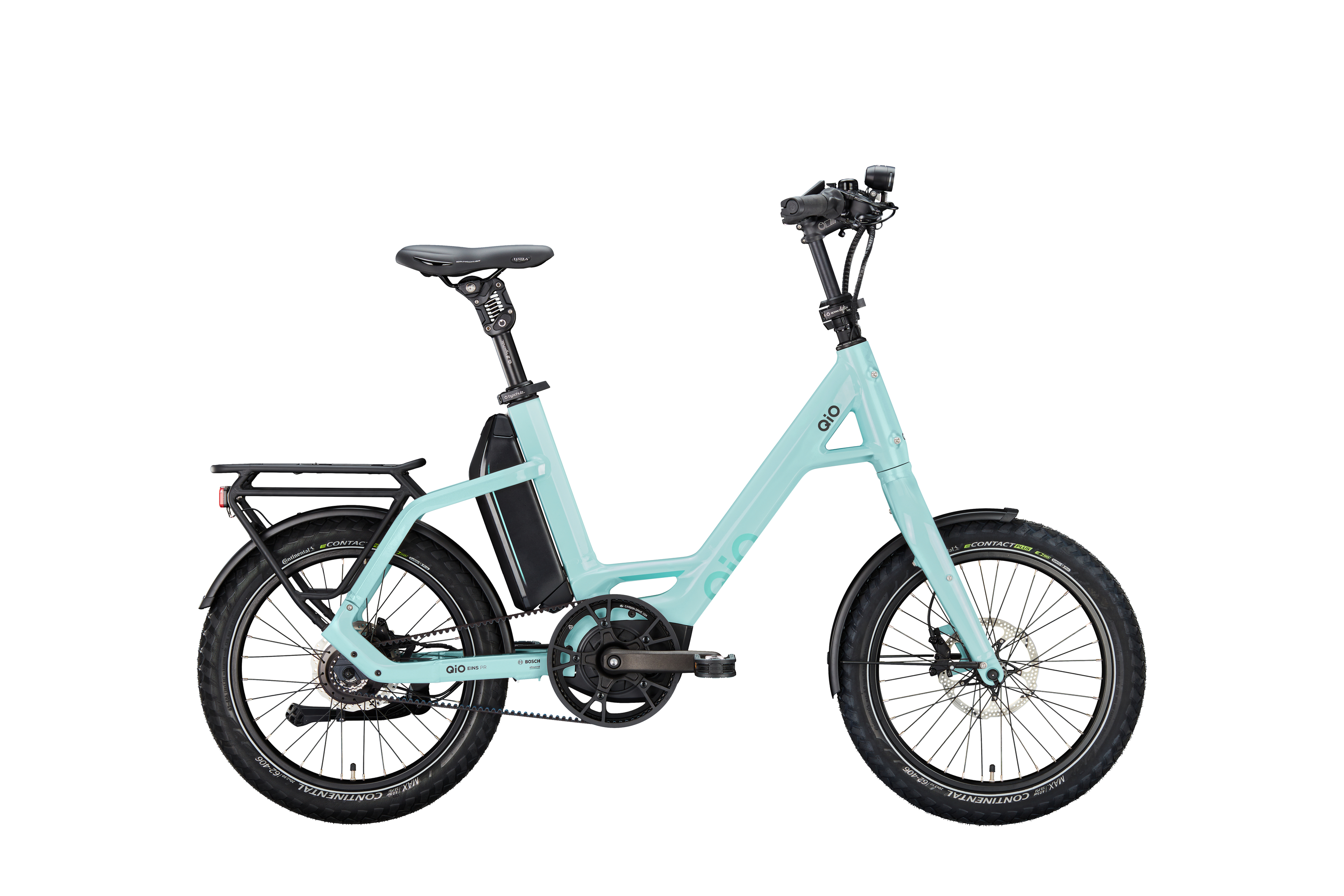 Das QiO "EINS P-R" ist mit dem Bosch Smart System noch intelligenter. Alle Antriebskomponenten des Kompakt-E-Bikes sind miteinander vernetzt und werden über die eBike Flow App gesteuert. Dadurch bleibt das Bike stets up-to-date, da Neuheiten und Updates automatisch aufgespielt werden. Der kompakte One-Size-Rahmen passt für Personen mit einer Körpergröße zwischen 1,60 und 1,90 m. Die Lenksäule und die Sattelstütze können für das ideale Fahrgefühl feinjustiert werden. Das "EINS P-R" überzeugt nicht nur mit seiner kompakten Größe, sondern auch mit hochwertiger Ausstattung. Das Bike ist mit einer 14-Gang Nabenschaltung von Rohloff ausgestattet, die ideal für E-Bikes mit starken Antrieben ist. Dazu zeigt das Bosch "Kiox 500" Display alle Gangwechsel an und unterstützt die Auswahl der richtigen Antriebsstufe für den kräftigen "Performance Line" Motor. Der 725-Wh-Akku macht das Kompakt-E-Bike perfekt für ausgiebige Touren. Mit 62mm breiten Reifen auf 20'' Laufrädern und der Parallelogramm-Federsattelstütze bietet das Bike hohen Komfort auf verschiedenen Oberflächen. Die hydraulischen Scheibenbremsen sowie die hochwertige Busch + Müller Beleuchtung runden das E-Bike mit allem ab, was es für den Alltag in der Stadt und auf dem Land braucht.