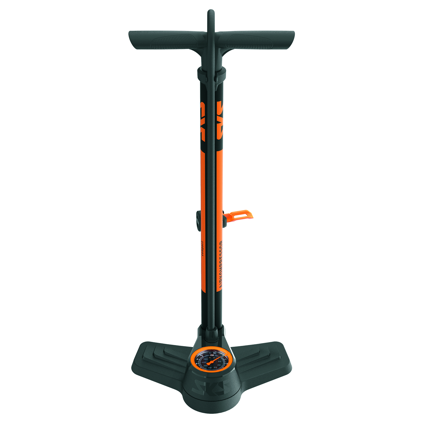 Bodenständig: Die SKS Standpumpe AIRKOMPRESSOR COMPACT 10.0 überzeugt mit einem stabilen Stahlrohr, einem gut ablesbaren Präzisionsmanometer und dem verbesserten MULTI VALVE-Kopf „MV EASY“ für alle Ventilarten.