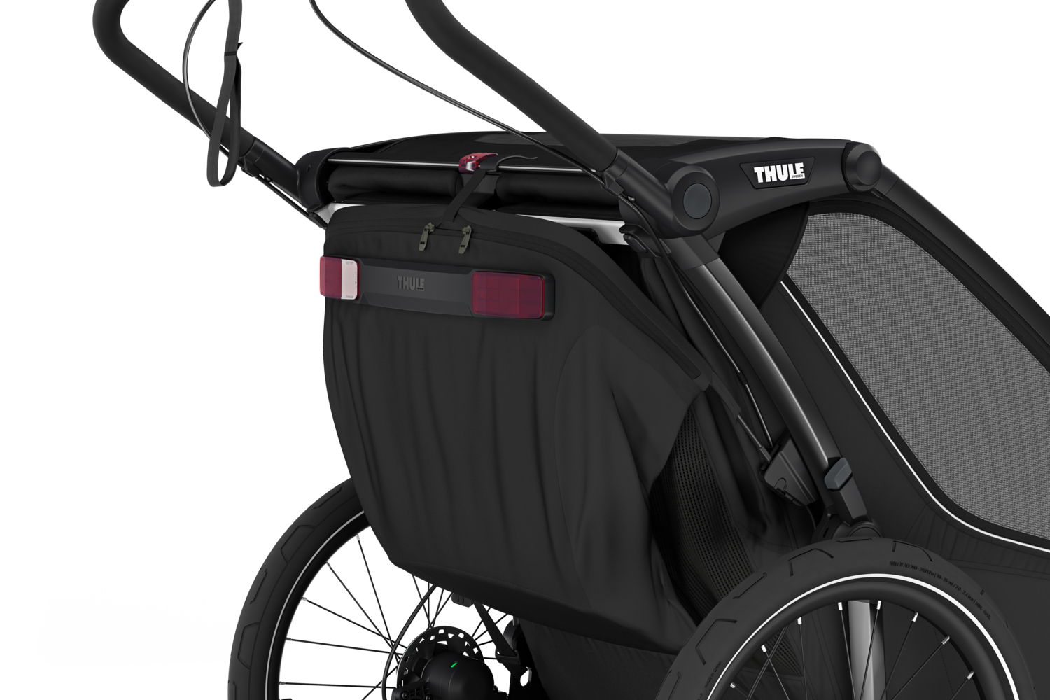 - Integriertes LED-Licht, betrieben durch die Thule Powerbank 10k (separat erhältlich) für bessere Sichtbarkeit unter allen Bedingungen