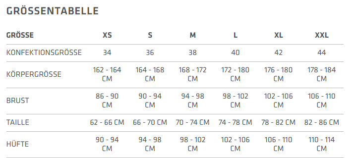 - Die Beinlänge wurde entsprechend der weiblichen Beinlänge gekürzt.