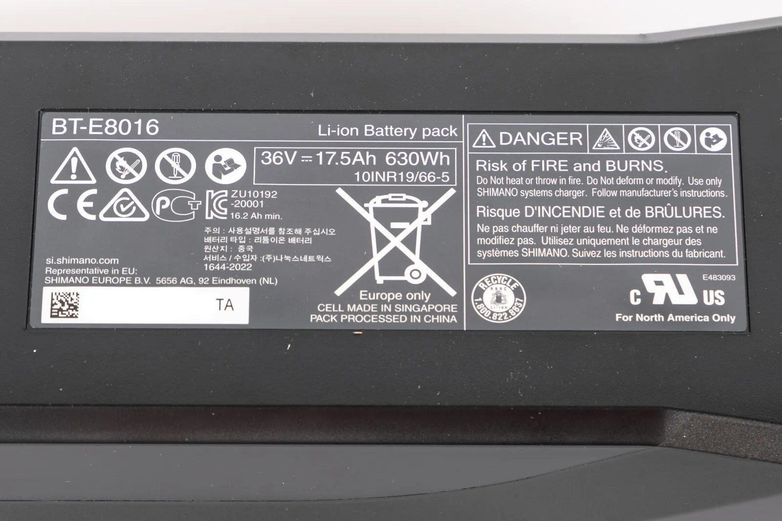 Shimano BT-E8016 Rahmenakku 630Wh