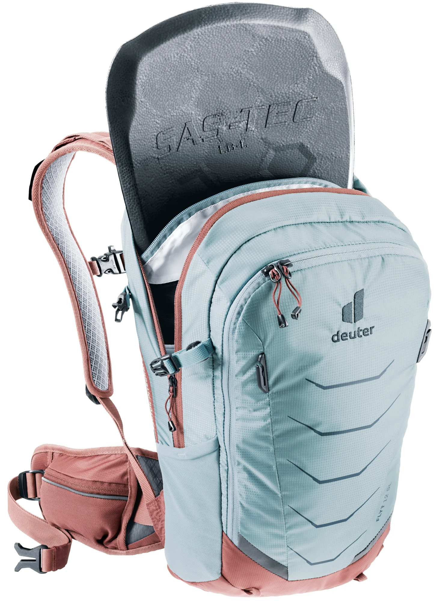 Weniger ist mehr – der gewichtsoptimierte, TÜV/GS zertifizierte Protektor-Rucksack Flyt SL, ist auf die essenziellen Features reduziert.So sorgt ein leichter, herausnehmbarer Rückenprotektor für Schutz bei Stürzen. Zur Fixierung des Helms gibt es Clips außen am Rucksack (Halbschalen-Helm) oder seitliche Kompressionsriemen (Fullface-Helm). Zwei verstaubare Riemen, am unteren Ende des Rucksacks, ermöglichen zudem die Befestigung der Bike-Protektoren.