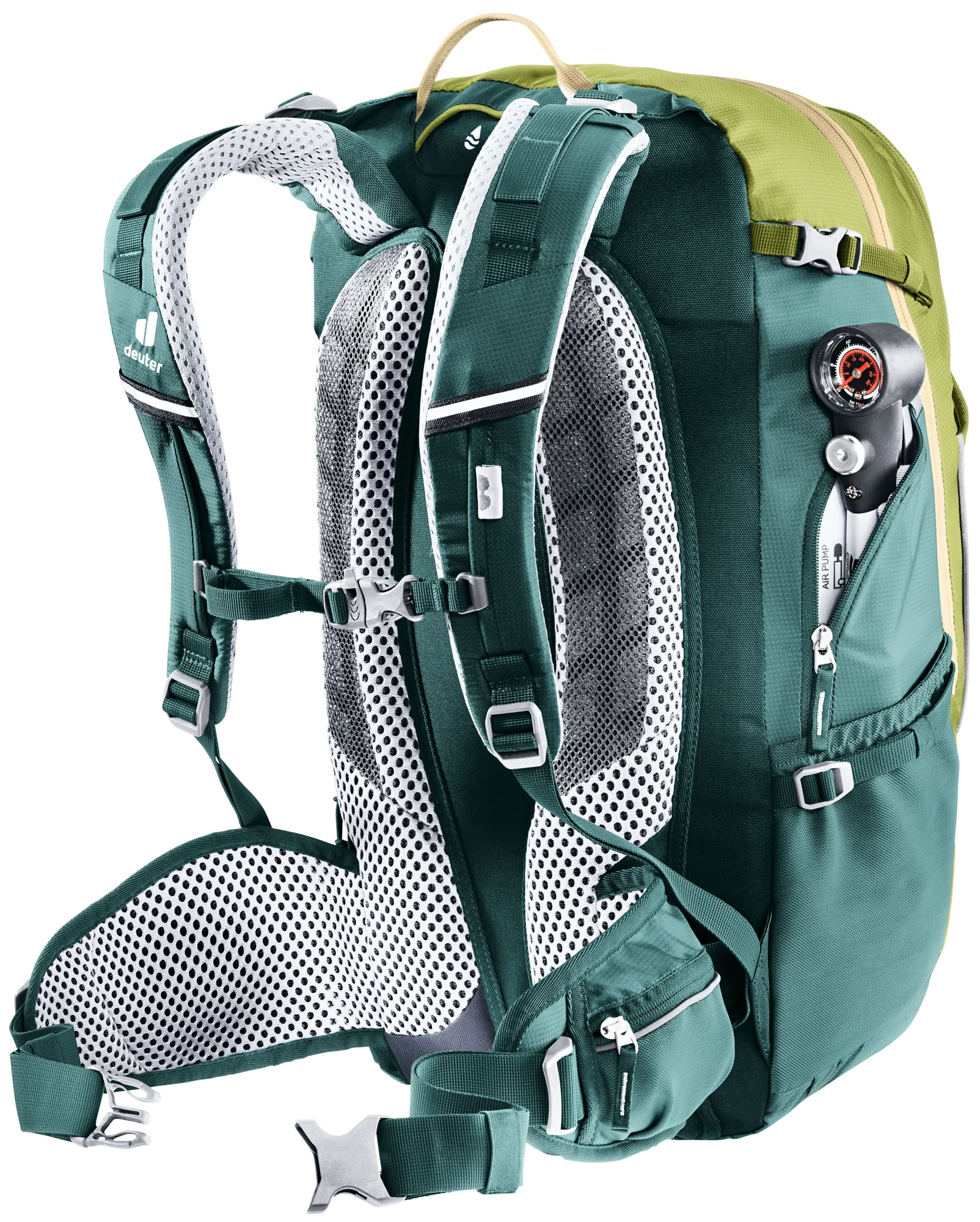 - Vortasche mit großem Organisationsteil und RV-Netztasche für Schlauch, Werkzeug und Pumpenhalterung